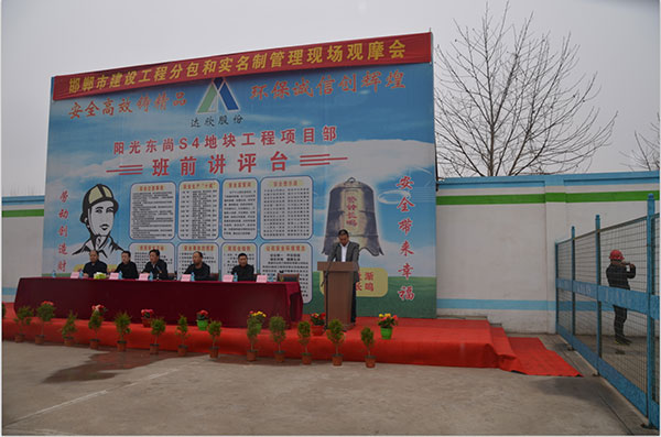 邯鄲市建管辦副主任連書民主持會議。建管辦勞務(wù)分包管理處處長郭長印宣讀了“邯鄲市建設(shè)工程分包和實名制管理實施意見”。工程公司經(jīng)理陳仁富同志在會上作“加強(qiáng)勞務(wù)分包管理,規(guī)范勞務(wù)隊伍行為”的經(jīng)驗交流。會后,陳仁富同志就我公司實名制用工管理,農(nóng)民工工資發(fā)放等接受了邯鄲電視臺采訪。