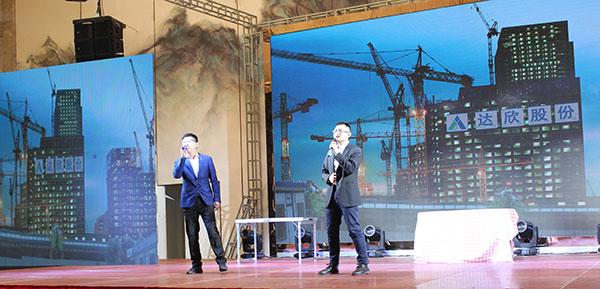 集團高管們在澎湃的“我們走在大路上”聲中激情登場,公司董事長馬和軍進行了致辭答謝。他回顧了集團一年來所取得的輝煌成績,感謝社會各界及全體達欣人的努力,并對公司的未來之路描繪了新的發(fā)展藍圖;接著,縣委書記顧國標(biāo)發(fā)表講話, 他指出,作為全縣經(jīng)濟社會發(fā)展的重要板塊,我縣建筑業(yè)總體發(fā)展態(tài)勢良好,總量和質(zhì)量穩(wěn)步提升。作為“海安建筑鐵軍”中的一支老牌“勁旅”,達欣集團的市場競爭力和品牌影響力不斷提升,他對公司2018年工作提出了新的希望,寄語未來集團要進一步深化企業(yè)體制機制創(chuàng)新,全面加快產(chǎn)業(yè)升級步伐,全面實施“科技強企”戰(zhàn)略,搶抓機遇,精準(zhǔn)定位,打造達欣更加輝煌的未來!