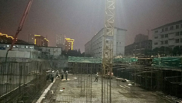△五一節(jié)當(dāng)天項(xiàng)目部晚上20:00的工地現(xiàn)場