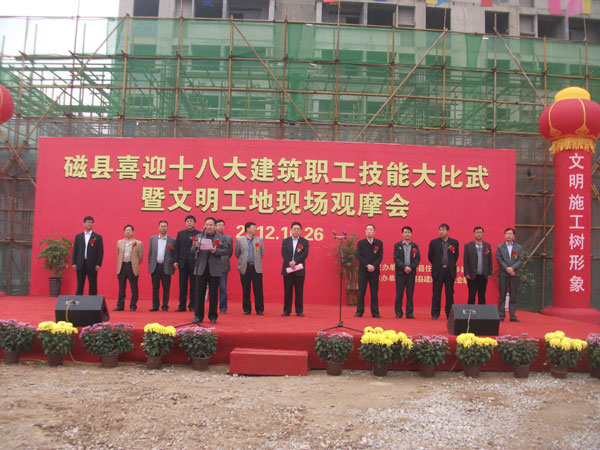 今年3月6日,磁縣住建局副局長趙志彬帶領(lǐng)質(zhì)量、安全監(jiān)督部門到項(xiàng)目部進(jìn)行檢查指導(dǎo),對形象策劃、現(xiàn)場布置、場容場貌等方面給予了很高的評價(jià),并確定將該項(xiàng)目作為轄區(qū)建設(shè)工地的標(biāo)桿。對此工程公司十分重視,加大了安全文明施工投入力度,嚴(yán)格按照國家AAA級文明工地的標(biāo)準(zhǔn)進(jìn)行常規(guī)管理,本項(xiàng)目現(xiàn)已在磁縣成為亮點(diǎn)工程,取得了良好的社會效應(yīng)。