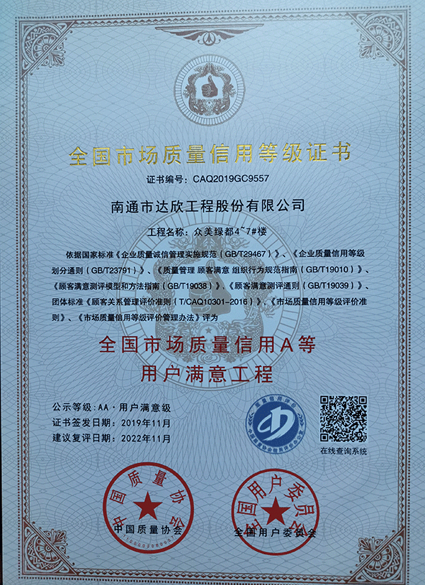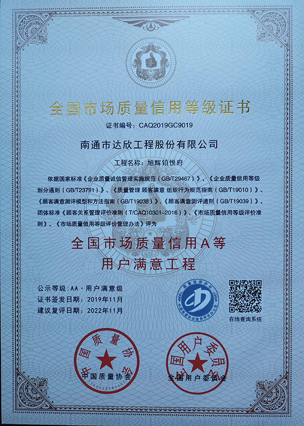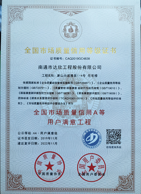 一舉獲得三項(xiàng)殊榮不僅僅是向外界展示了達(dá)欣集團(tuán)在工程建設(shè)上的技術(shù)實(shí)力和精品工程信譽(yù)度,更是達(dá)欣集團(tuán)在工程建設(shè)中以“質(zhì)量贏得市場,使企業(yè)建立較強(qiáng)的市場競爭力”。