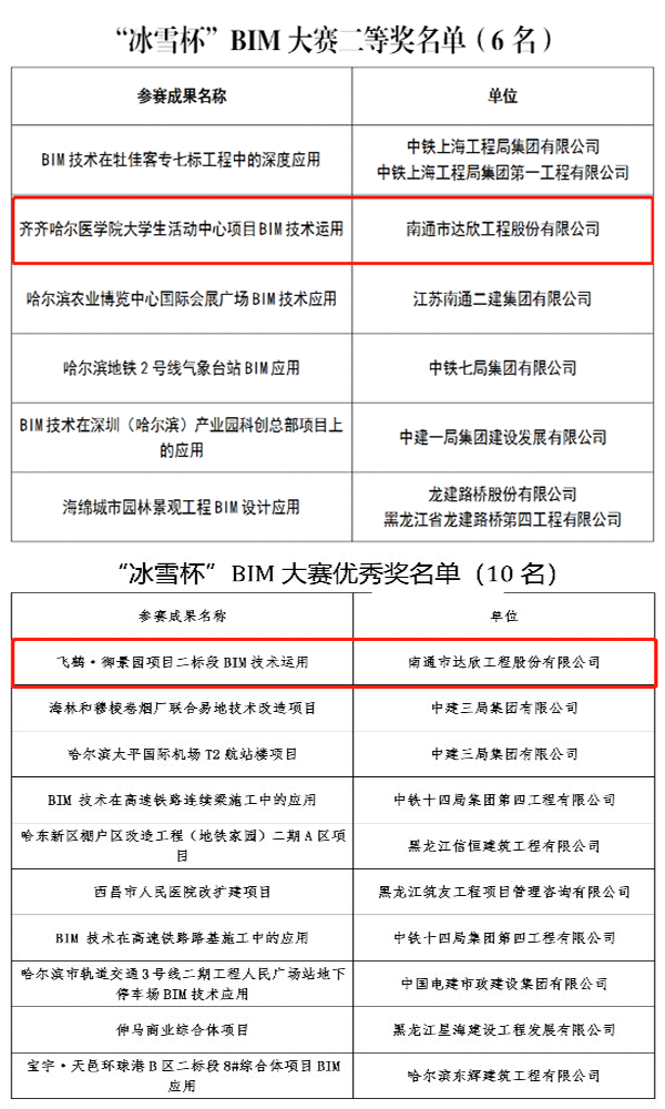 黑龍江省第一屆“冰雪杯”建設(shè)工程BIM大賽共收到30項(xiàng)成果,其內(nèi)容涵蓋BIM應(yīng)用的各個(gè)階段,通過初賽《飛鶴·御景園項(xiàng)目二標(biāo)段工程BIM技術(shù)應(yīng)用》榮獲“冰雪杯”BIM大賽優(yōu)秀獎(jiǎng),《齊齊哈爾醫(yī)學(xué)院大學(xué)生活動(dòng)中心BIM技術(shù)應(yīng)用》進(jìn)入決賽并通過視頻直播答辯榮獲大賽二等獎(jiǎng)。
