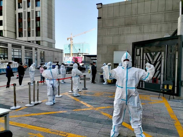 近日,烏魯木齊市米東區(qū)出現(xiàn)了疫情反撲,全市開展為期14天的每日核酸檢測。會展社區(qū)在建項(xiàng)目多,流動人口多,檢測點(diǎn)多且面廣,社區(qū)工作人員工作量驟增。十一分隊(duì)吾悅廣場項(xiàng)目青年志愿者們得知后,立即行動。有的協(xié)助測溫、有的維護(hù)現(xiàn)場秩序,現(xiàn)場秩序井然。