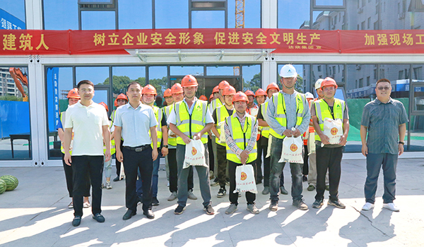 劉學(xué)亮代表市總工會(huì)向奮戰(zhàn)在一線的達(dá)欣集團(tuán)廣大職工表達(dá)親切的慰問和關(guān)懷,并將慰問品一一發(fā)至他們手中。他表示,海安市建筑業(yè)的發(fā)展離不開廣大一線職工的辛勤付出,希望大家關(guān)注自身健康、注意安全、安心工作,做好夏季防暑降溫預(yù)防工作,政府永遠(yuǎn)是大家堅(jiān)實(shí)的后盾。他指出,今年的三伏天酷暑難耐,高溫橙色、紅色預(yù)警已連續(xù)多日持續(xù),特別是在當(dāng)前防疫工作仍不容懈怠的關(guān)鍵時(shí)刻,希望達(dá)欣集團(tuán)要緊盯疫情防控不松懈,做到防控有力、責(zé)任到人、不留漏洞,切實(shí)為廣大職工營造安全、放心、健康的施工環(huán)境。