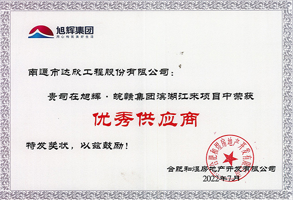 近日,旭輝·皖贛集團(tuán)對2022年度優(yōu)質(zhì)供應(yīng)商進(jìn)行表彰,集團(tuán)第一工程公司在旭輝·皖贛集團(tuán)濱湖江來項目中榮獲優(yōu)秀供應(yīng)商稱號。
