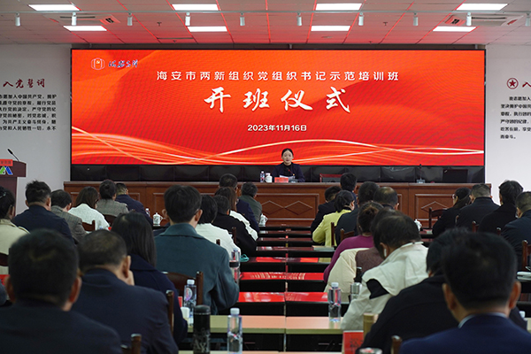 11月16日,全市兩新組織黨組織書記示范培訓班開班儀式在達欣集團舉行,海安市委組織部常務副部長、“兩新”工委書記、黨建辦主任吳蘭,各區(qū)鎮(zhèn)街道組織委員、培訓班全體學員、高新區(qū)兩新組織黨組織書記代表等100多人出席活動。集團在海領導馬和軍、杭小建、劉厚純參加活動。