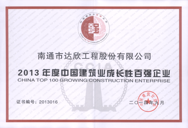 根據(jù)《中國建筑業(yè)雙百強企業(yè)評價辦法》,經(jīng)企業(yè)申報、各地區(qū)和有關行業(yè)建筑業(yè)(建設)協(xié)會審核、中建協(xié)復核、專家評審、公示等程序,我公司入選2013年度中國建筑業(yè)成長性百強企業(yè),名次排位第16名,較2012年度提升12位,較2011年度提升32位。