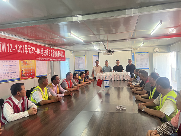 活動現(xiàn)場,第一工程公司總經理倪志榮、副總經理朱國華、安全科科長姜德穩(wěn)、項目經理周進均,將防暑降溫物資逐一發(fā)放到職工手中。此舉不僅為職工提供了實用保障,更傳遞了公司以人為本的發(fā)展理念。