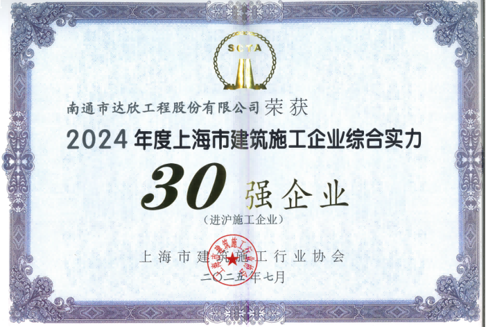 近日,上海市建筑施工行業(yè)協(xié)會(huì)公布了2024年度上海市建筑施工企業(yè)綜合實(shí)力結(jié)果,第一工程公司連續(xù)十八年獲評(píng)“上海市建筑施工企業(yè)綜合實(shí)力30強(qiáng)企業(yè)”和“上海市建筑業(yè)誠信企業(yè)”稱號(hào)。