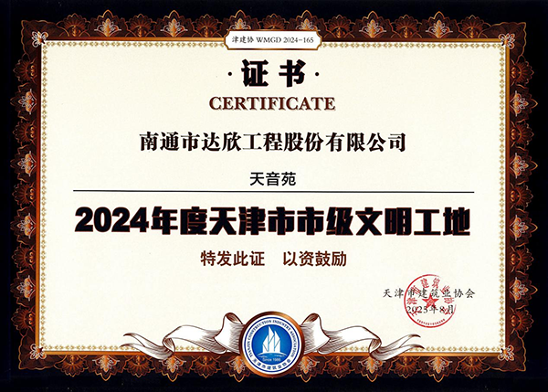 近日,天津市建筑業(yè)協(xié)會(huì)發(fā)布了津建協(xié)〔2025〕9號(hào)關(guān)于公布2024年度天津市文明施工示范工地和天津市市級(jí)文明工地通過工程的名單,第六工程公司承建的天音苑項(xiàng)目被授予“2024年度天津市市級(jí)文明工地”稱號(hào)。