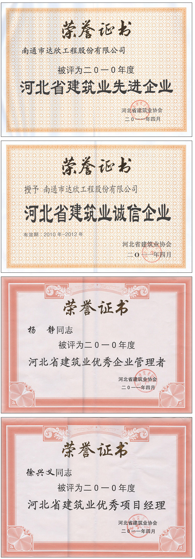 大會對第四工程公司承建的國優(yōu)工程石家莊中華商務(wù)廣場、南通市達(dá)欣工程股份有限公司榮獲的全國優(yōu)秀工程建設(shè)QC小組活動企業(yè)進(jìn)行了通報表揚(yáng)。同時對71家2010年度河北省建筑業(yè)誠信企業(yè)(江蘇省在冀施工企業(yè)僅2家)、106家河北省建筑業(yè)先進(jìn)企業(yè)(江蘇省在冀施工企業(yè)僅3家)、優(yōu)秀企業(yè)管理者和優(yōu)秀項目經(jīng)理進(jìn)行了表彰和頒獎。