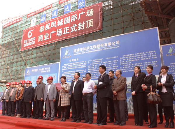 我司承建的唐山鳳城國際廣場工程,經(jīng)過項目部全體員工的艱苦努力,克服樓層高、體量大等種種技術難題和資金及周轉材料投入大、施工人員緊缺的重重困難,抓安全、保質(zhì)量、趕時間、拼速度,商業(yè)裙樓的主體結構如期封頂,這標志著鳳城國際廣場工程的施工取得了階段性的勝利。
