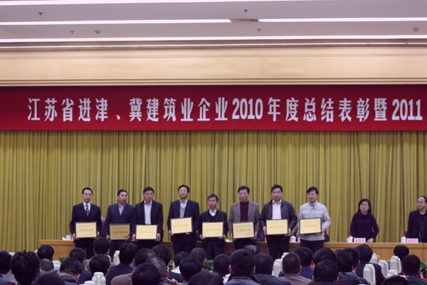 2011年3月20日,江蘇省進(jìn)津、冀建筑業(yè)企業(yè)2010年度總結(jié)表彰暨2011年工作大會(huì)在天津大禮堂隆重召開。大會(huì)由江蘇省建設(shè)廳駐天津辦事處副主任韓勁松主持,主任鄧福林作了“搶抓新機(jī)遇,謀劃新發(fā)展,不斷開創(chuàng)江蘇建筑業(yè)新局面”的工作報(bào)告,對2010年的工作進(jìn)行回顧,并提出2011年工作目標(biāo)任務(wù)。江蘇省建筑工程管理局副局長紀(jì)迅、天津市外地施工隊(duì)伍管理站站長吳海、江蘇省住房和城鄉(xiāng)建設(shè)廳監(jiān)察室主任王毅、計(jì)劃賬務(wù)處調(diào)研員徐和美等江蘇省、天津市的主管部門領(lǐng)導(dǎo)應(yīng)邀出席了會(huì)議,紀(jì)迅局長、吳海站長作了重要講話。