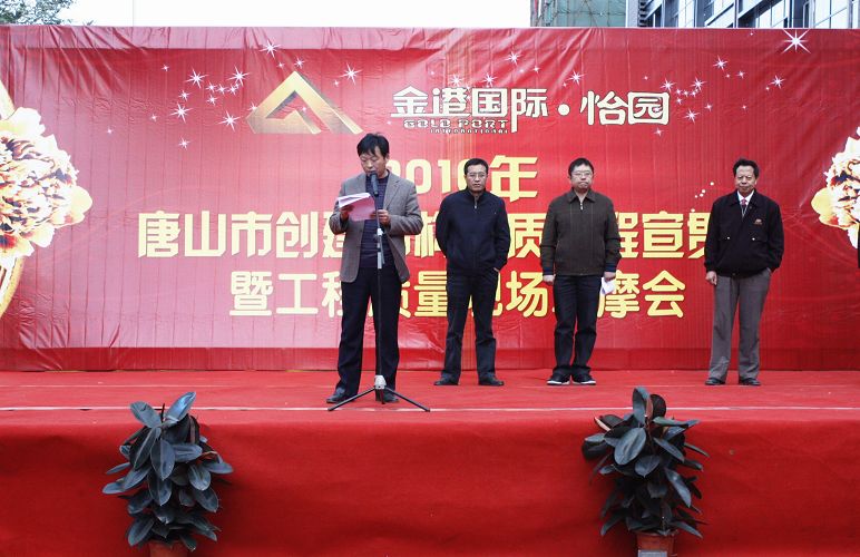 為推進(jìn)實(shí)施名牌戰(zhàn)略,鼓勵(lì)施工企業(yè)爭(zhēng)創(chuàng)名優(yōu)工程,促進(jìn)唐山市建設(shè)工程結(jié)構(gòu)質(zhì)量不斷提高,市住建局于2010年10月26日在我司承建的金港國(guó)際怡園小區(qū)項(xiàng)目舉行 “唐山市創(chuàng)建結(jié)構(gòu)優(yōu)質(zhì)工程宣貫會(huì)暨工程質(zhì)量現(xiàn)場(chǎng)觀摩會(huì)”,市住建局工程處正副處長(zhǎng)、市建設(shè)工程質(zhì)量監(jiān)督站主要領(lǐng)導(dǎo)及各科室人員出席觀摩會(huì)。
