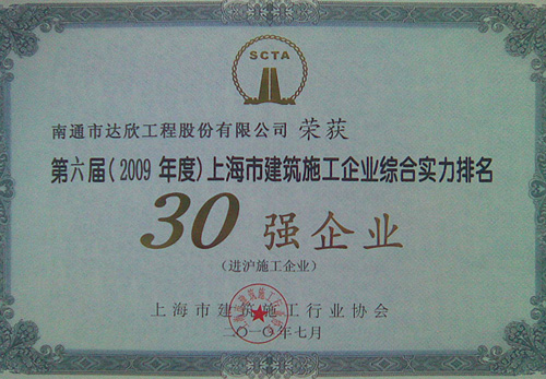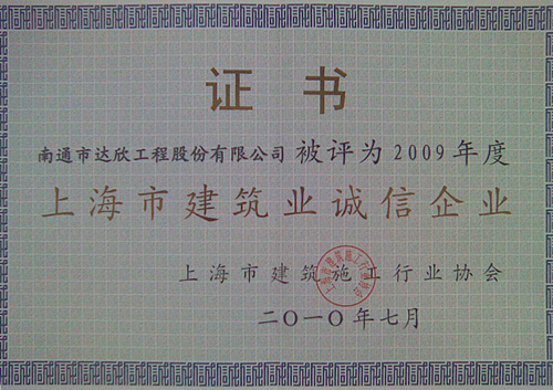 達(dá)欣股份首次挺進(jìn)進(jìn)滬施工企業(yè)前30強(qiáng)(進(jìn)滬施工的江蘇企業(yè)僅有八家),這標(biāo)志著公司跨入了進(jìn)滬強(qiáng)企的第一方陣,標(biāo)志著公司進(jìn)滬施工進(jìn)入了新階段!同時(shí)公司還再次榮獲了“上海市建筑業(yè)誠信企業(yè)”稱號(hào)。上海市的主流媒體“解放日報(bào)”、行業(yè)報(bào)刊“建筑時(shí)報(bào)”均予以報(bào)導(dǎo)。