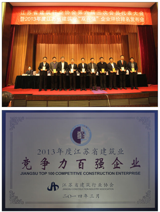 經(jīng)評審委員會(huì)初審、統(tǒng)計(jì)、公示、核審,南通市達(dá)欣工程股份有限公司入選2013年度江蘇建筑業(yè)企業(yè)競爭力百強(qiáng),排名第35位,與2012年度相比,公司綜合競爭力穩(wěn)步提升,公司董事長馬和軍作為江蘇建筑業(yè)優(yōu)秀企業(yè)家代表上臺(tái)領(lǐng)獎(jiǎng)。江蘇建筑業(yè)企業(yè)“雙百強(qiáng)”評比是根據(jù)企業(yè)經(jīng)營規(guī)模、資產(chǎn)規(guī)模、盈利能力、員工構(gòu)成、科技進(jìn)步、管理水平、精神文明等八個(gè)指標(biāo)體系綜合評比產(chǎn)生的,它代表了企業(yè)的綜合競爭力水平。