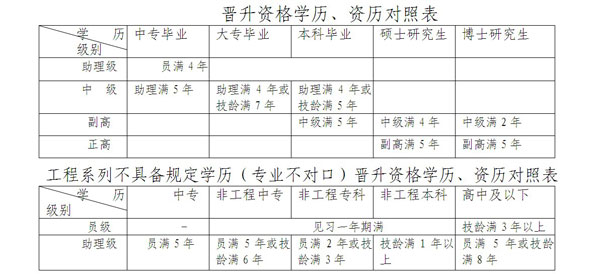 (1)評審。專業(yè)技術(shù)人員取得初級專業(yè)技術(shù)資格后,符合下列表中國家規(guī)定的學(xué)歷、職稱、專業(yè)技術(shù)工作年限的,可申報(bào)評審晉升相應(yīng)級別的職稱。少數(shù)專業(yè)破格申報(bào)評審的,依照該系列評審條件中破格申報(bào)、評審條件。