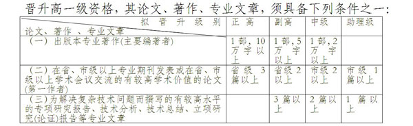(3)職稱論文、著作的要求:申請人取得低一級資格,申報(bào)