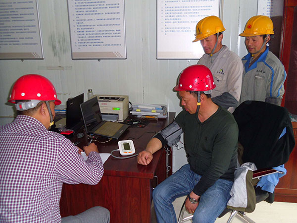 加強(qiáng)宣傳,項(xiàng)目部堅(jiān)持每日對(duì)職工進(jìn)行班組教育和日常班前教育,讓職工每日班前都能明確當(dāng)日的工作任務(wù)、操作規(guī)程和工作環(huán)境,提高個(gè)人的安全防范意識(shí),確保安全生產(chǎn);在每棟樓懸掛“安全生產(chǎn)月”活動(dòng)的宣傳標(biāo)語(yǔ)。加強(qiáng)警示,在工地大門口設(shè)置了重大危險(xiǎn)源公示牌,在每棟樓的入口處公示當(dāng)日本樓棟號(hào)的危險(xiǎn)源,時(shí)刻提醒職工注意作業(yè)期間身邊的危險(xiǎn)源。加強(qiáng)檢查,認(rèn)真組織對(duì)臨邊、洞口防護(hù)、漏電保護(hù)裝置進(jìn)行重點(diǎn)檢查,及時(shí)消除安全隱患。同時(shí)對(duì)各項(xiàng)目部40歲以上的員工進(jìn)行一次拉網(wǎng)式血壓檢查。對(duì)于高血壓的特殊工種,要求其休息調(diào)養(yǎng),待血壓正常后方可繼續(xù)上崗。