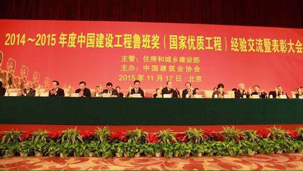 11月17日,2014-2015年度中國建設(shè)工程魯班獎(國家優(yōu)質(zhì)工程)經(jīng)驗(yàn)交流暨表彰大會在北京釣魚臺國賓館舉行。由我公司承建的齊市公安局業(yè)務(wù)技術(shù)用房,參建的海安中洋公寓榮獲魯班金像獎。